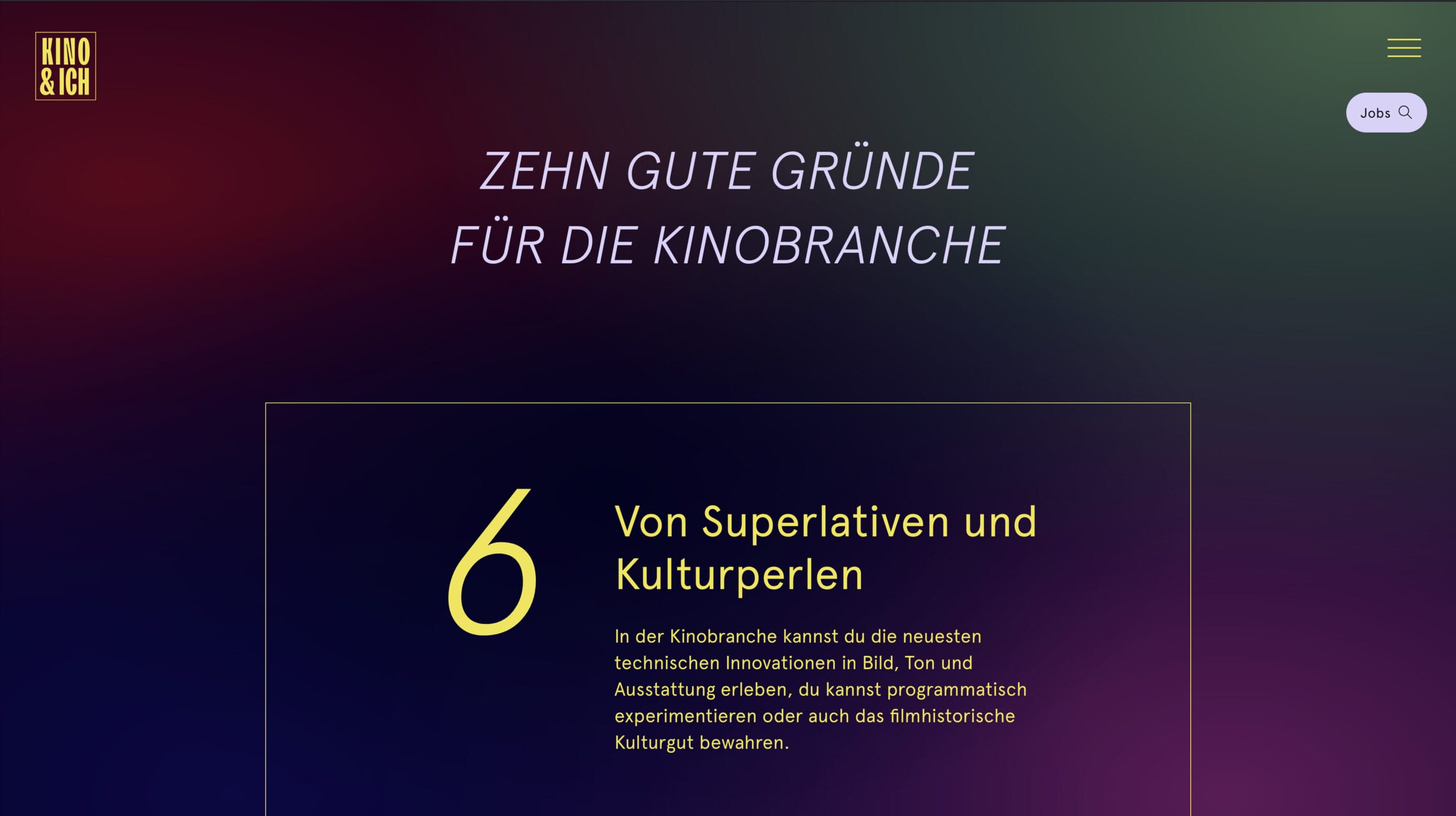 Deshalb die einfache Formel: KINO & ICH.