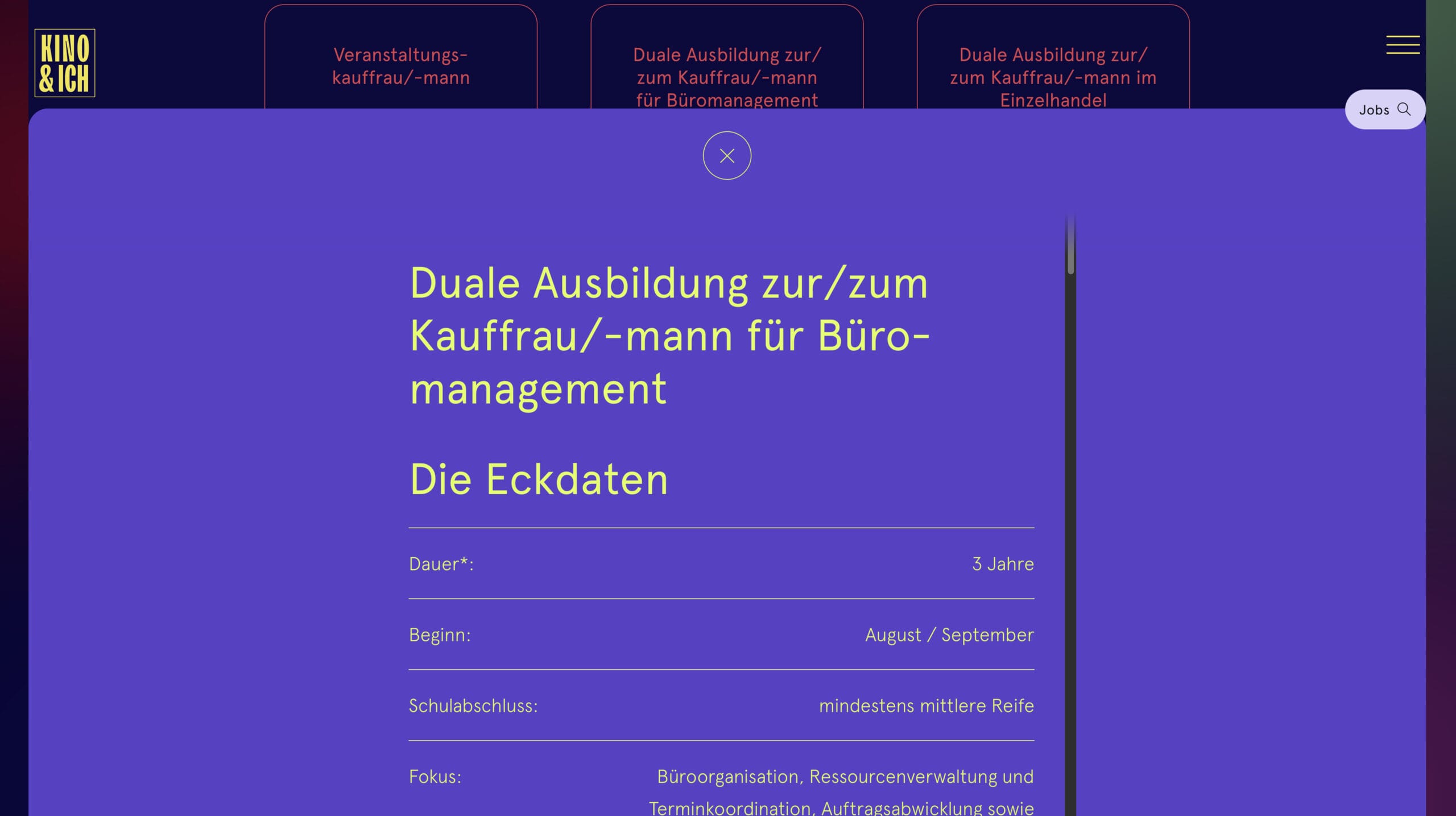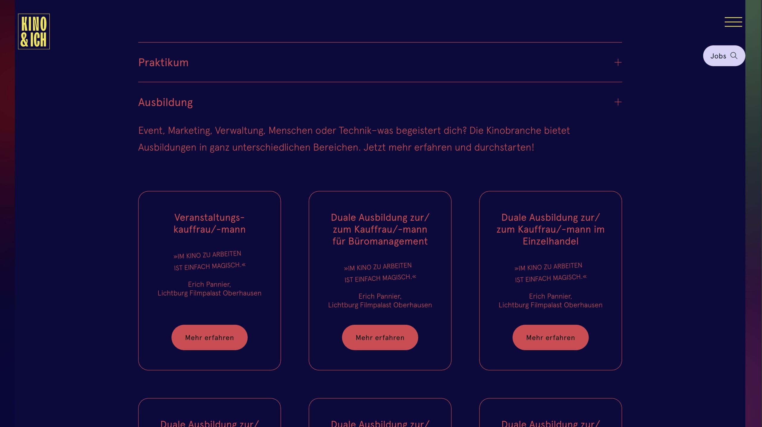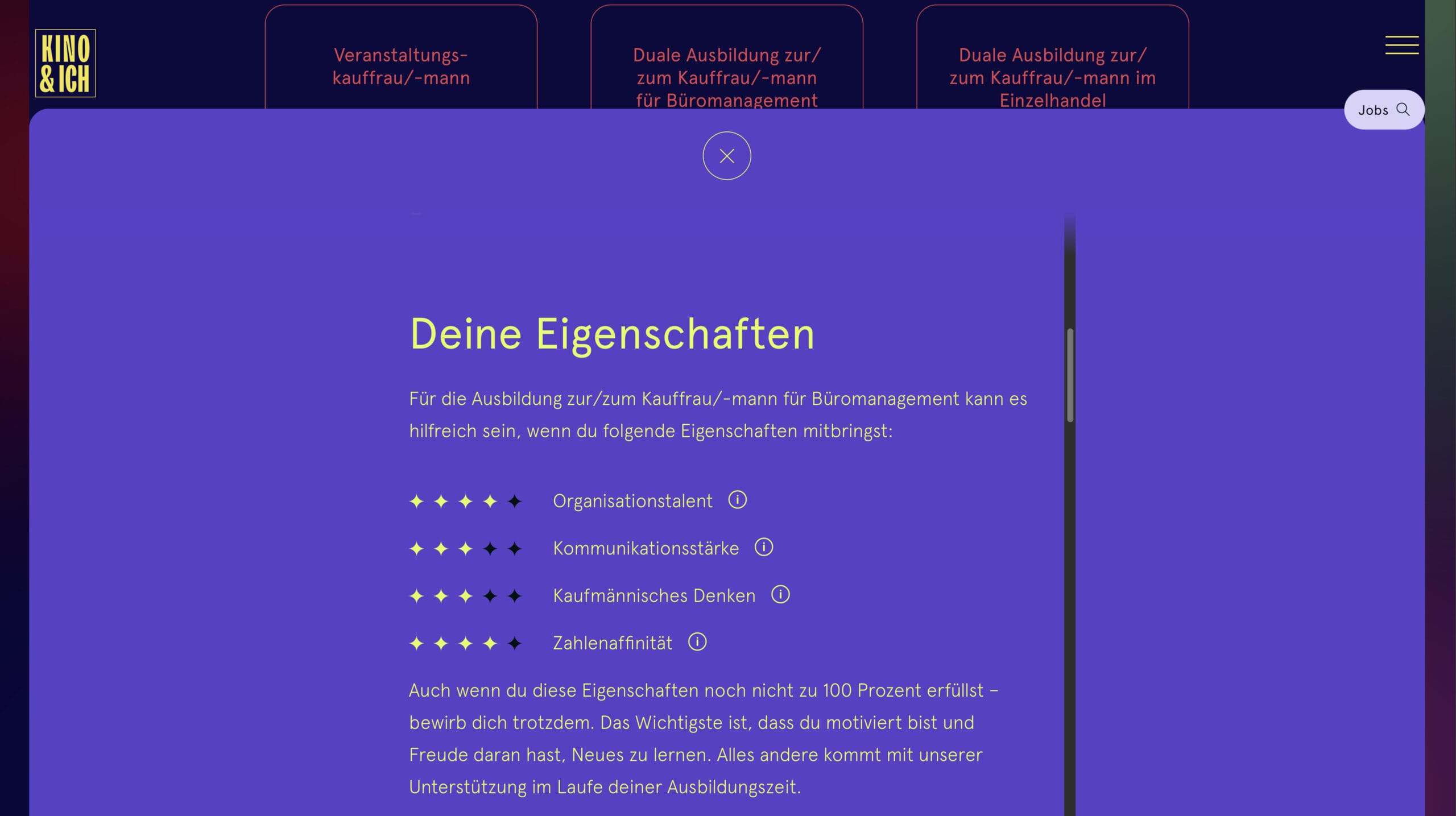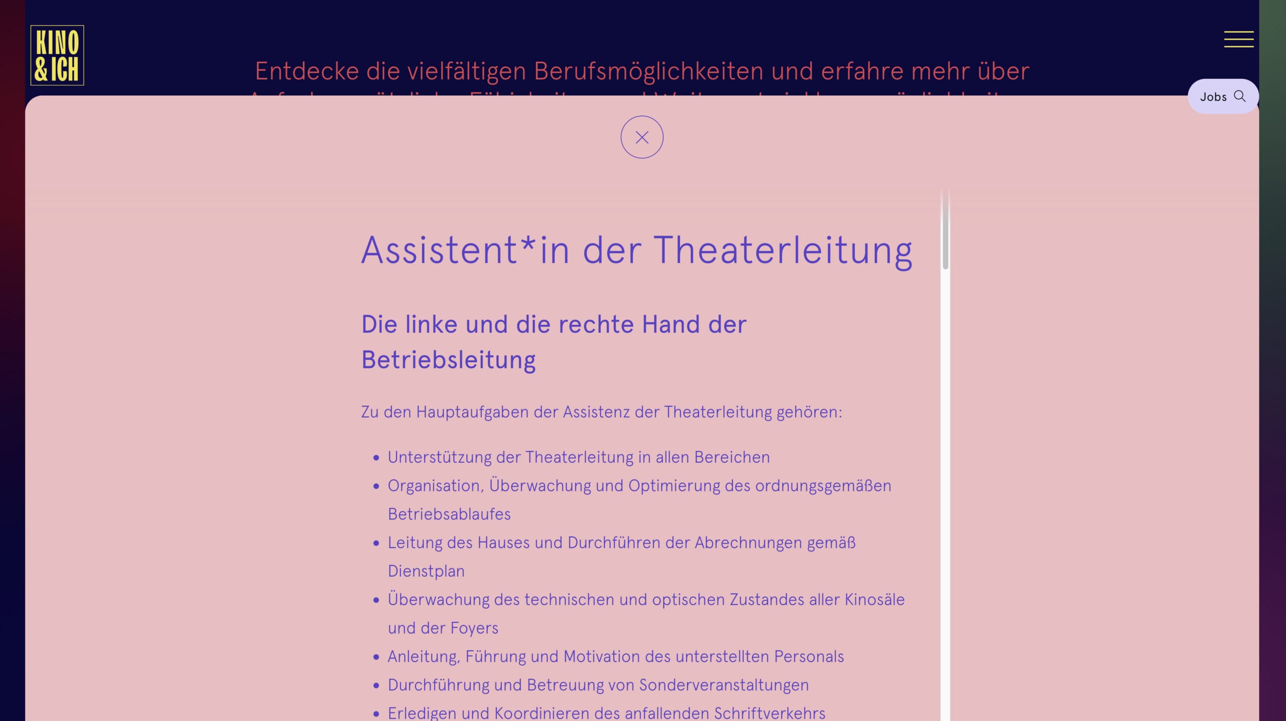 Darüberhinaus konnten wir eine anspruchsvolle – jedoch leicht zu bedienende – Lösung entwickeln, um Arbeitsplätze in deutschen Kinos anzubieten und zu finden.